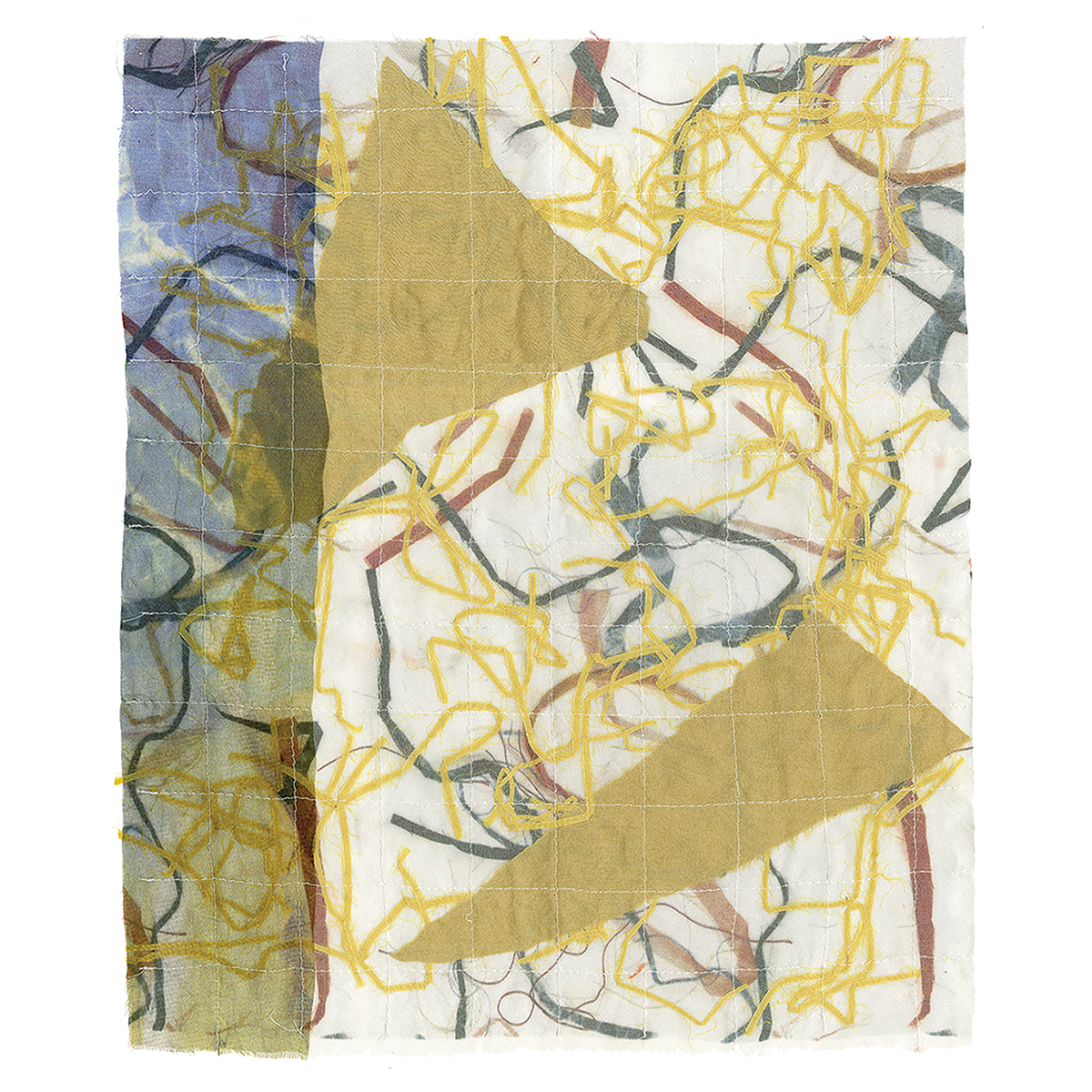 Explorations in layering fabric scraps, digital prints, silkscreen techniques.